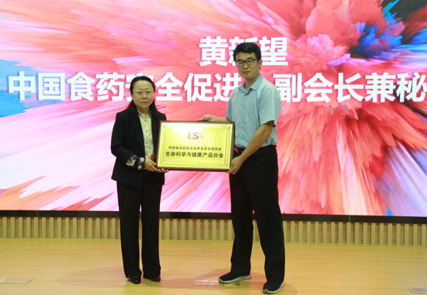 中国食药安全促进会副会长兼秘书长黄新望为分会负责人于维香女士授牌