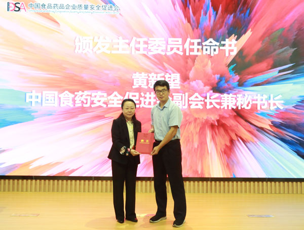 中国食药安全促进会副会长兼秘书长黄新望为主任委员于维香女士颁发任命书