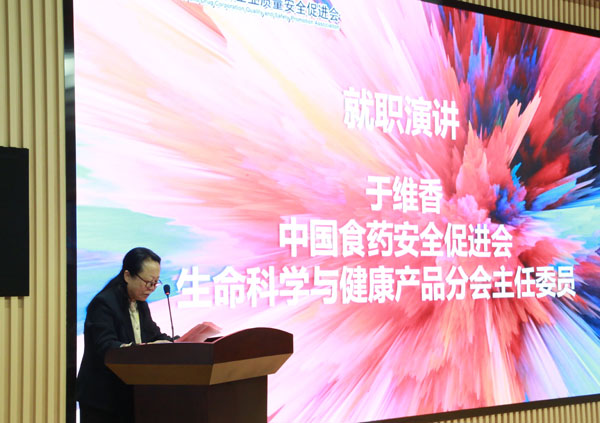 中国食药安全促进会生命科学与健康产品分会主任委员于维香女士发表就职演说