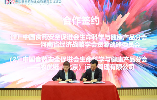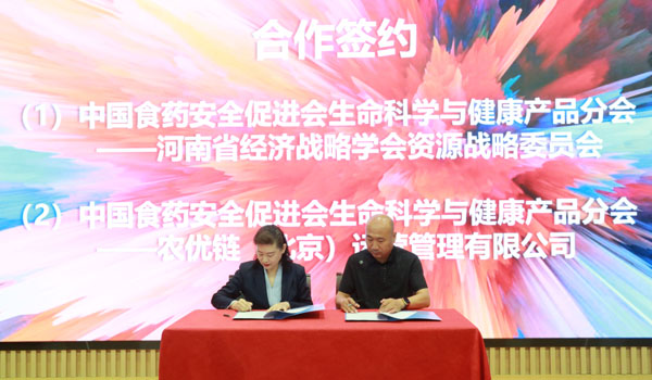 与此同时,执行主任委员周亚弟还代表分会与河南省经济战略学会资源战略委员会、农优链(北京)运营管理有限公司签署战略合作协议。双方均表示,后续将基于自身业务,结合中国食药安全促进会生命科学与健康产业分会的功能和服务等,共同推进相关业务的发展,为健康中国2030贡献力量。